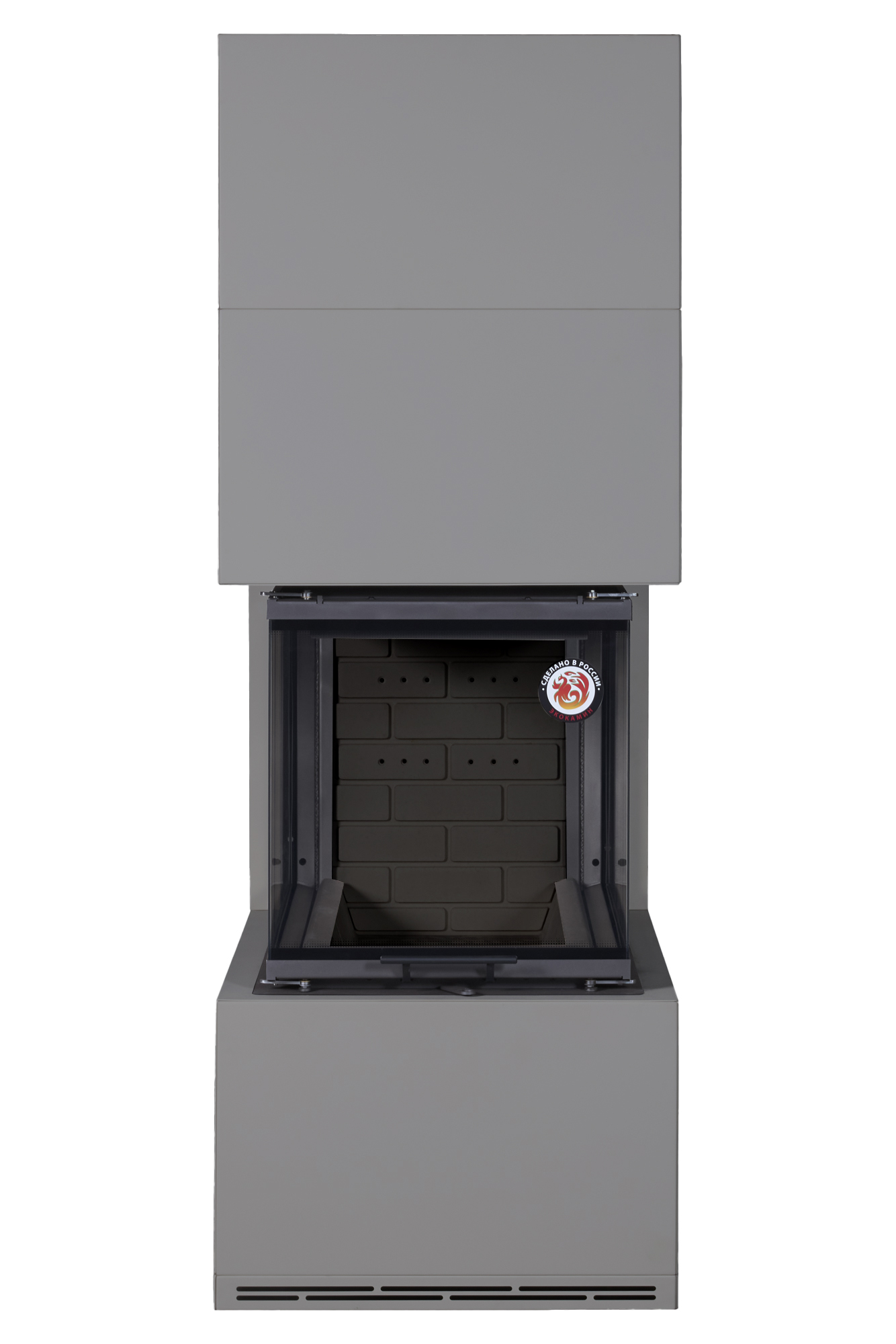 Камин оборудован вторичным дожигом, что способствует повышению эффективности сгорания и снижению выбросов. Благодаря высокому КПД в 80%, он экономичен в использовании и позволяет сэкономить на затратах на отопление.