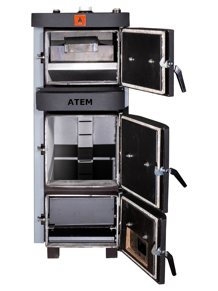 Твердотопливный котел АТЕМ Житомир-22М имеет увеличенный размер топки котла "Житомир" позволяют комфортно загружать топливо разного размера, а конструкция теплообменника спроектирована таким образом, чтобы значительно снизить засор котла продуктами сгорания и обеспечить стабильную работу в любых условиях!Особенности: